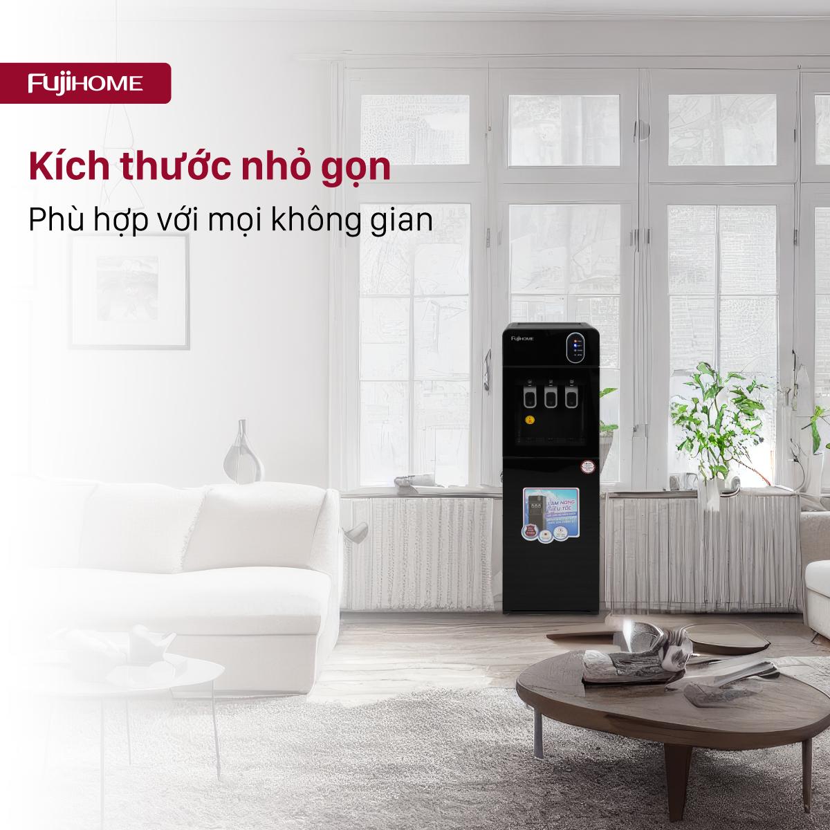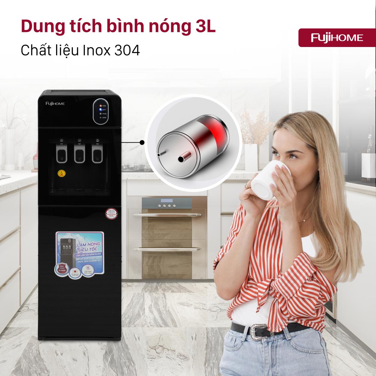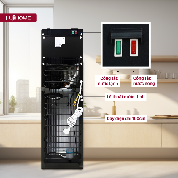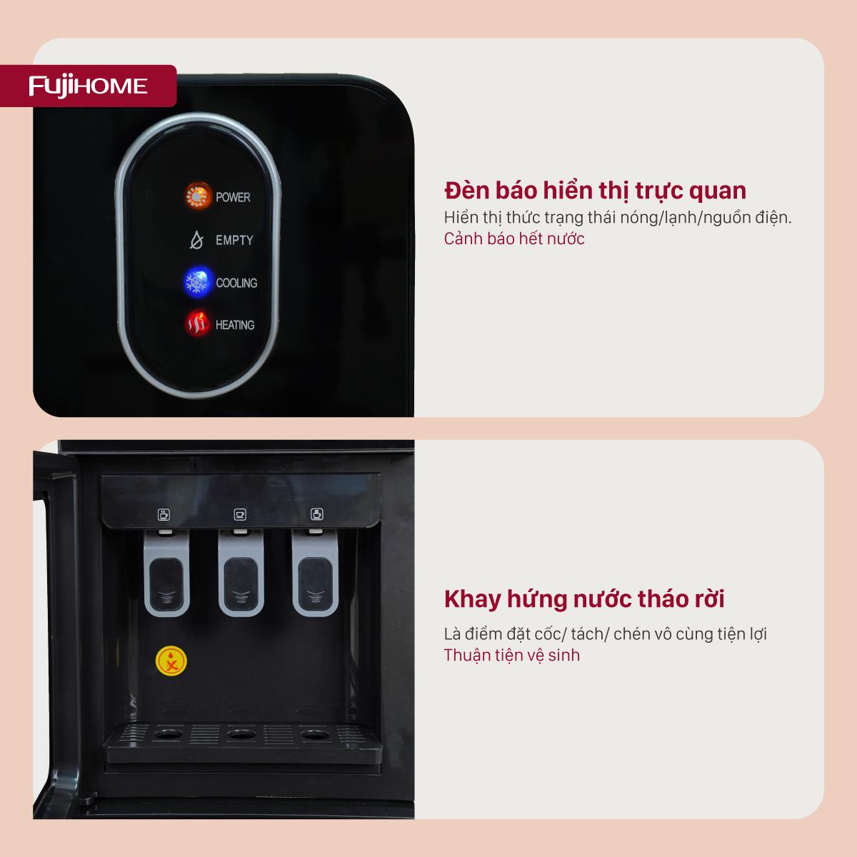 Cây Nước Nóng Lạnh 3 Vòi Fujihome WD11EC – Thiết Kế Bình Âm Hiện Đại, làm lạnh bằng công nghệ block nước lạnh sâu.