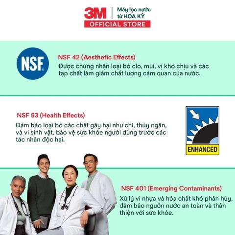 Chứng nhận: Đạt chứng nhận NSF42, NSF53 của Trung tâm hợp tác An toàn thực phẩm và nước uống thuộc Tổ chức y tế thế giới (WHO)