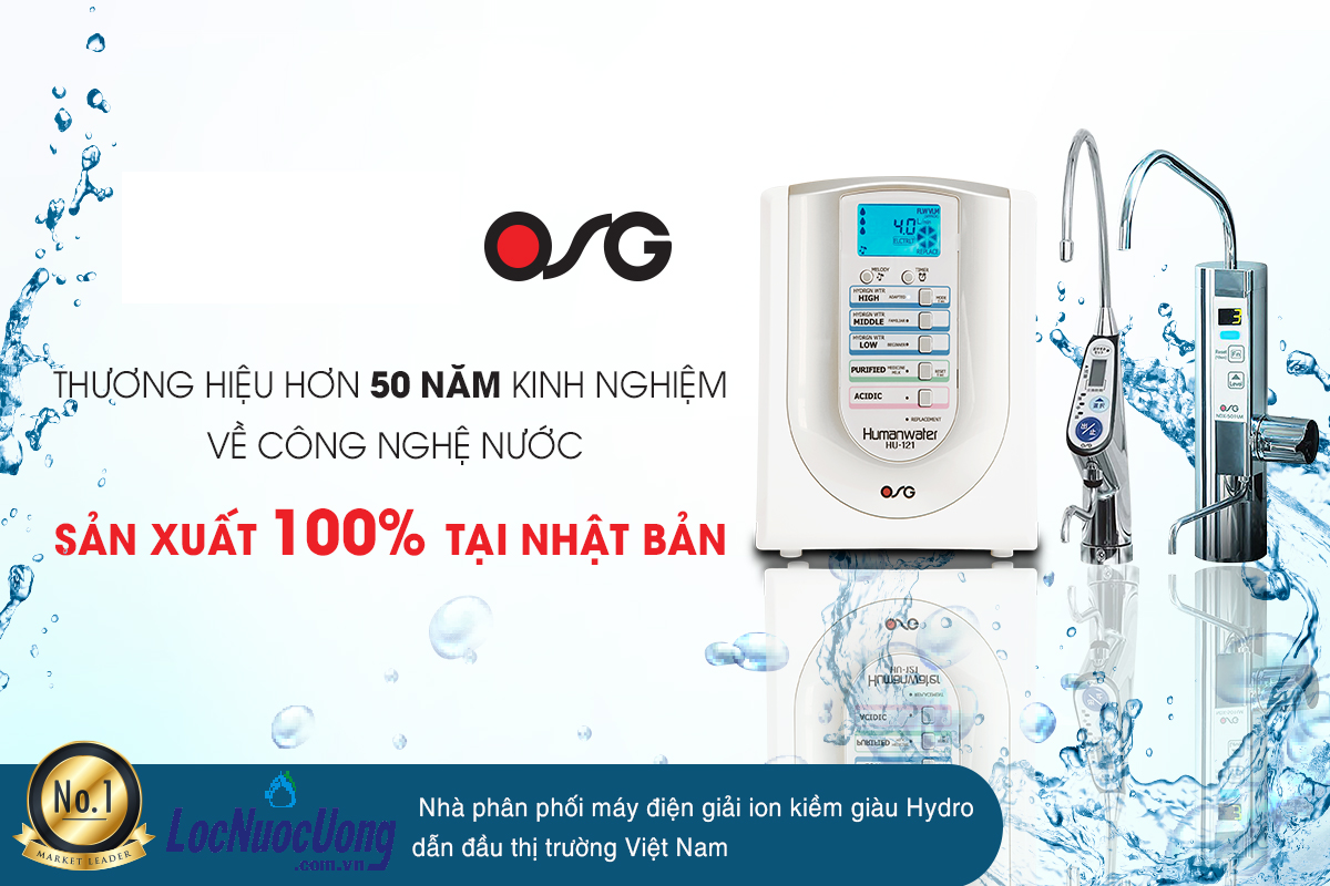 Máy lọc nước iON kiềm OSG được sản xuất bởi tập đoàn OSG Nhật Bản và có hơn 50 năm kinh nghiệm trong lĩnh vực nghiên cứu, sản xuất các thiết bị liên quan đến nước như: máy lọc nước, máy điện giải nước iON kiềm, máy khử trùng cho thiết bị y tế.