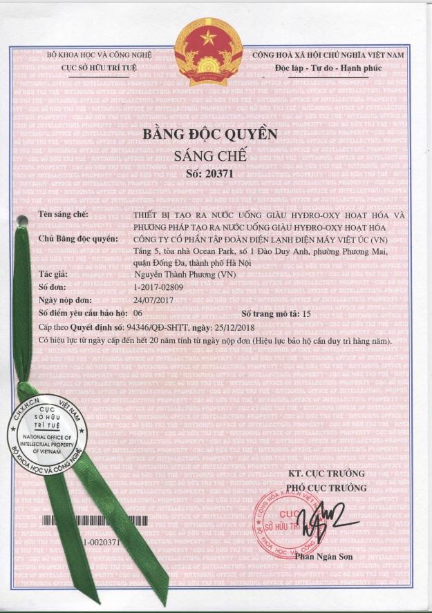 Bổ sung nguồn nước Hydrogen tốt cho sức khỏe với công nghệ tạo nước Hydrogen độc quyền