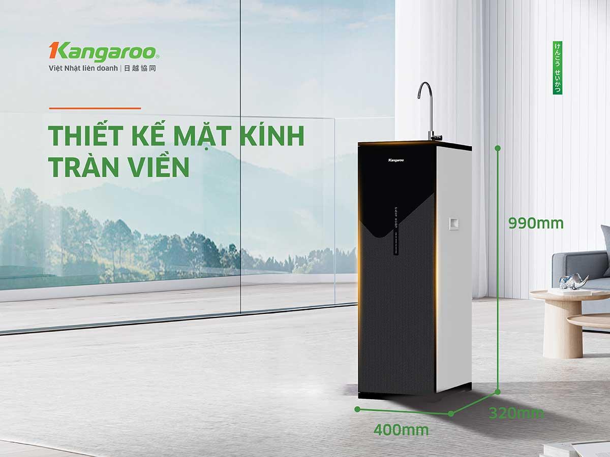 Thế hệ máy lọc nước mới series infinity – Kangaroo KGHP11S5 có mặt kính tràn viền vô cực, mãn nhãn trải nghiệm. Kiểu dáng SLIM nhỏ gọn, kích thước dài*sâu*cao lần lượt là 320*400*990mm.