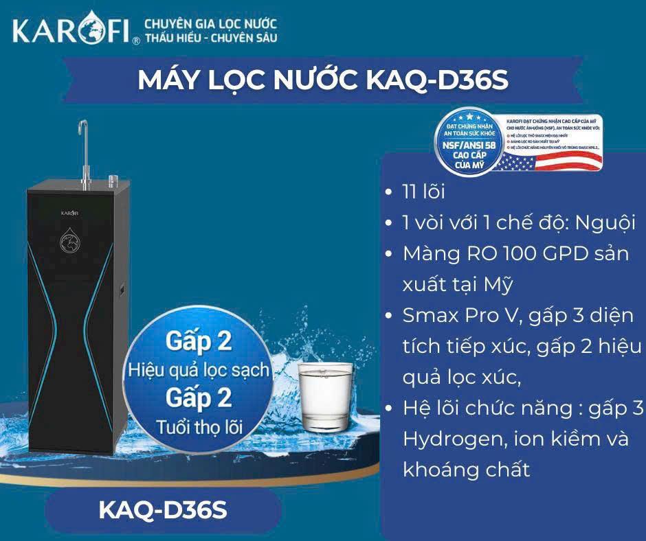 Máy lọc nước Karofi KAQ-D36S - Lọc sạch vượt trội - Tốt chuẩn an tâm