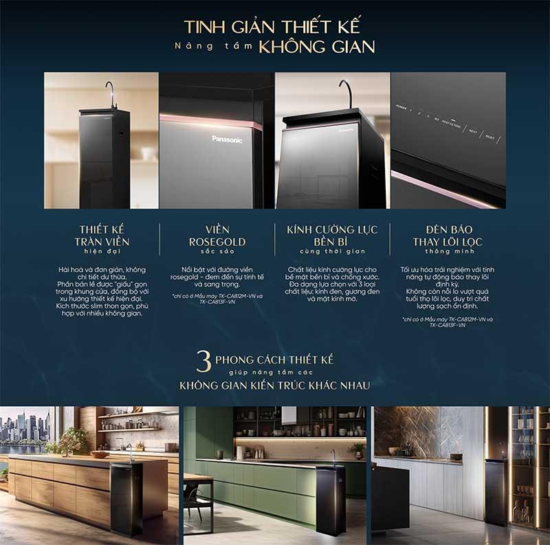Đường viền Rosegold trên máy lọc nước RO Panasonic TK-CA811K-VN tạo điểm nhấn đẹp mắt cho toàn bộ sản phẩm, tính thẩm mỹ cao, góp phần nâng tầm không gian sống của gia đình.