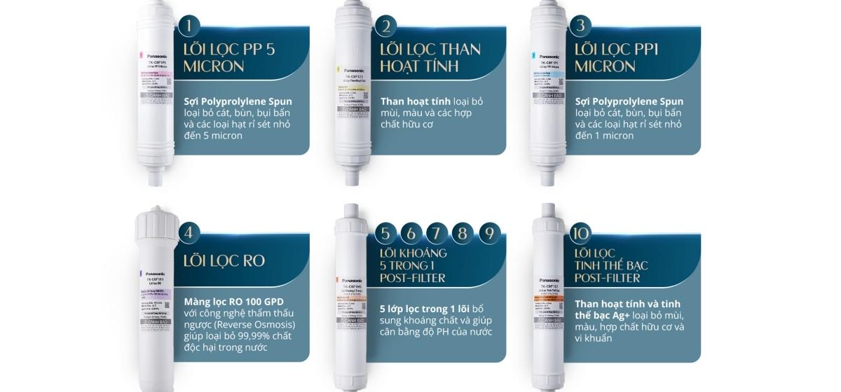 Hệ thống 6 lõi lọc 10 lớp lọc loại bỏ 99,9% vi-rút và vi khuẩn