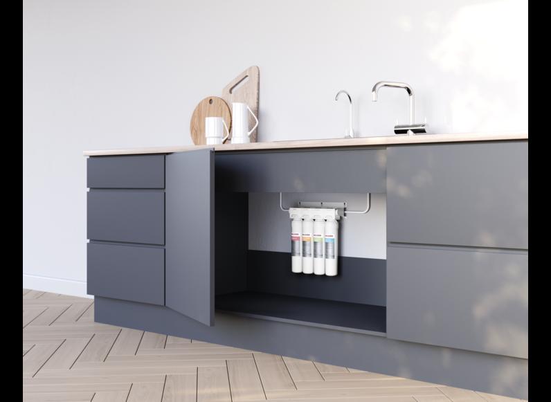 Công suất lọc 4 lít/phút (~240 lít/giờ), đáp ứng nhu cầu nước sạch của cả gia đình.