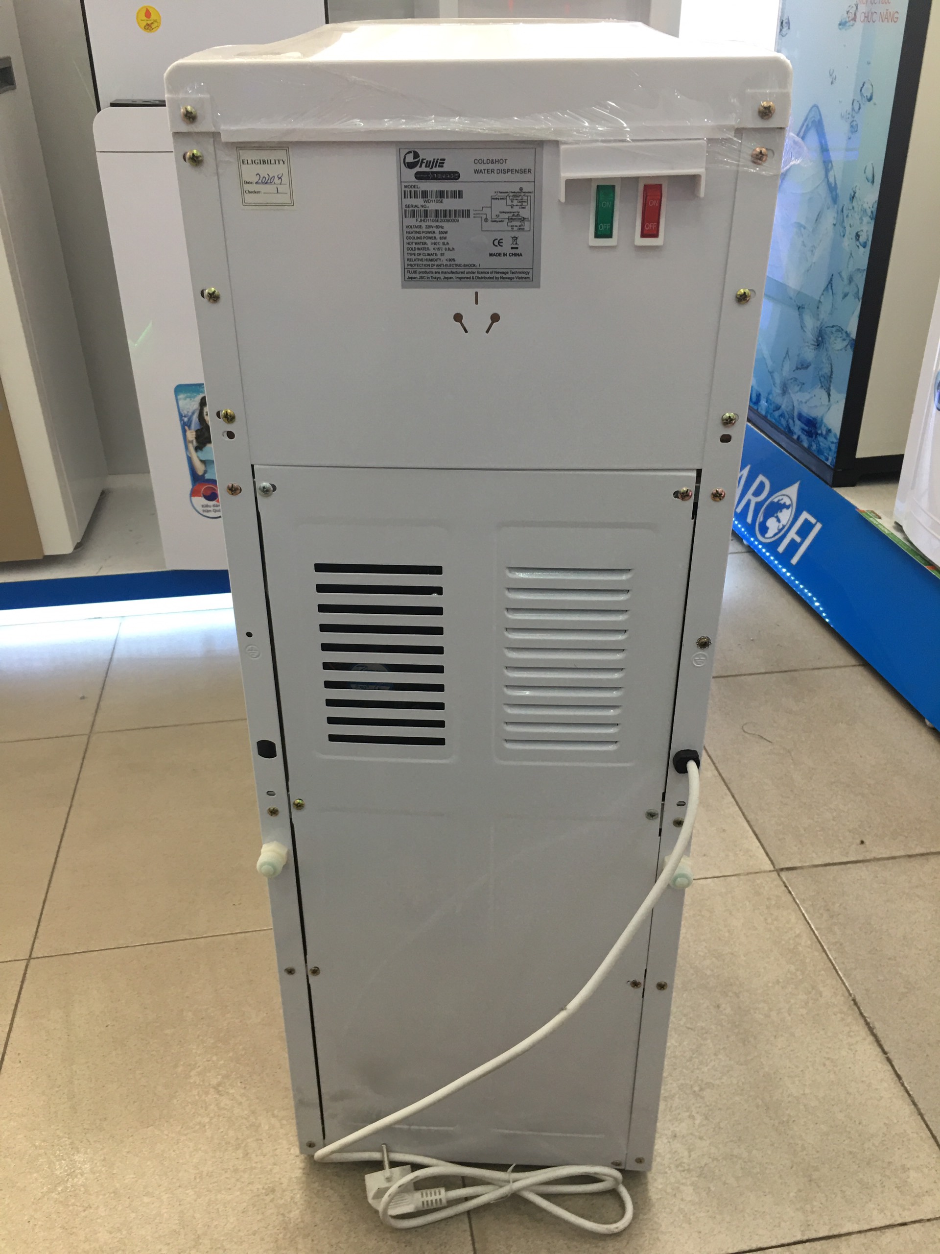 Cây nước nóng lạnh FujiE WD1105E được sản xuất theo đúng tiêu chuẩn công nghệ hiện đại của Nhật Bản, đạt tiêu chuẩn quốc tế cũng như có đầy đủ các chứng nhận CO, CQ.