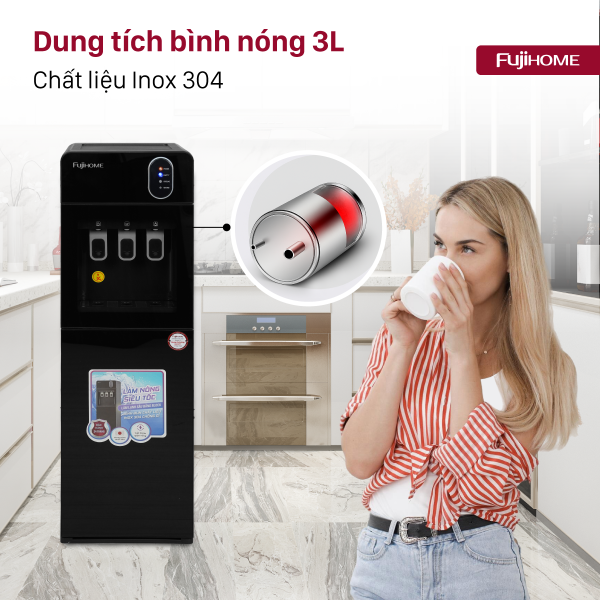 Sản phẩm có công suất làm nóng 500W, nhiệt độ nước nóng từ 85 – 95°C, đảm bảo nước luôn sẵn sàng để phục vụ các nhu cầu như pha cà phê, trà, sữa cho trẻ hoặc nấu mì. Bình chứa nước nóng có dung tích lớn tới 3 lít, làm từ Inox 304 cao cấp, đảm bảo an toàn vệ sinh, không gây ảnh hưởng đến mùi vị và chất lượng nước.