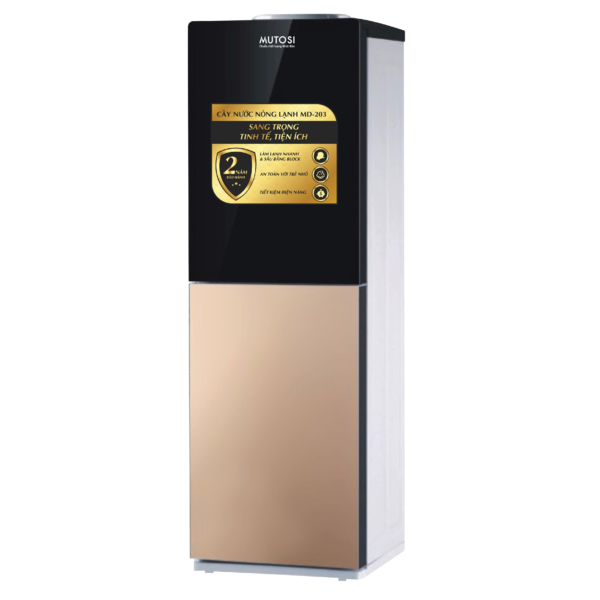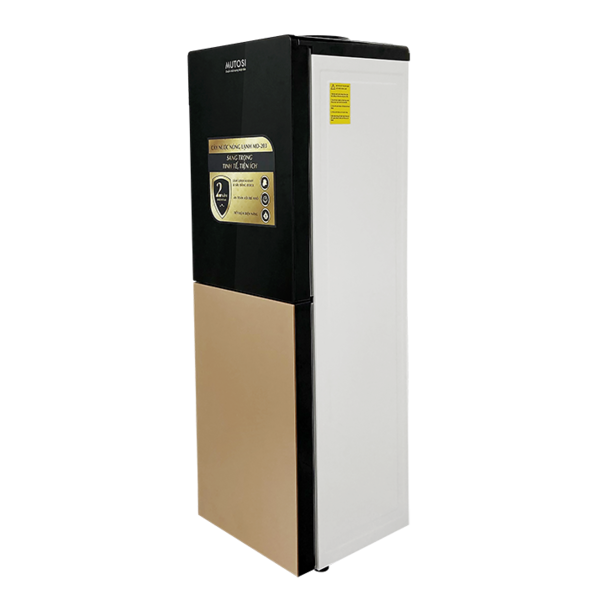- Cây nước nóng lạnh úp bình MD-203 có màu đen kết hợp màu vàng đồng, tạo cảm giác sang trọng hiện đại.