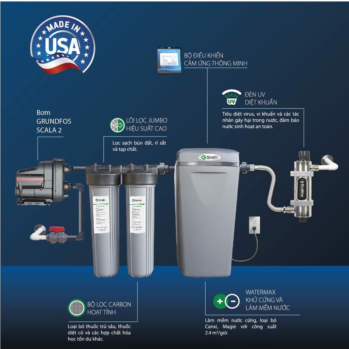 Công nghệ WATERMAX khử cứng và làm mềm nước: Nước tiếp cận tối đa vật liệu lọc, giúp khai thác tối ưu hiệu quả hệ thống.