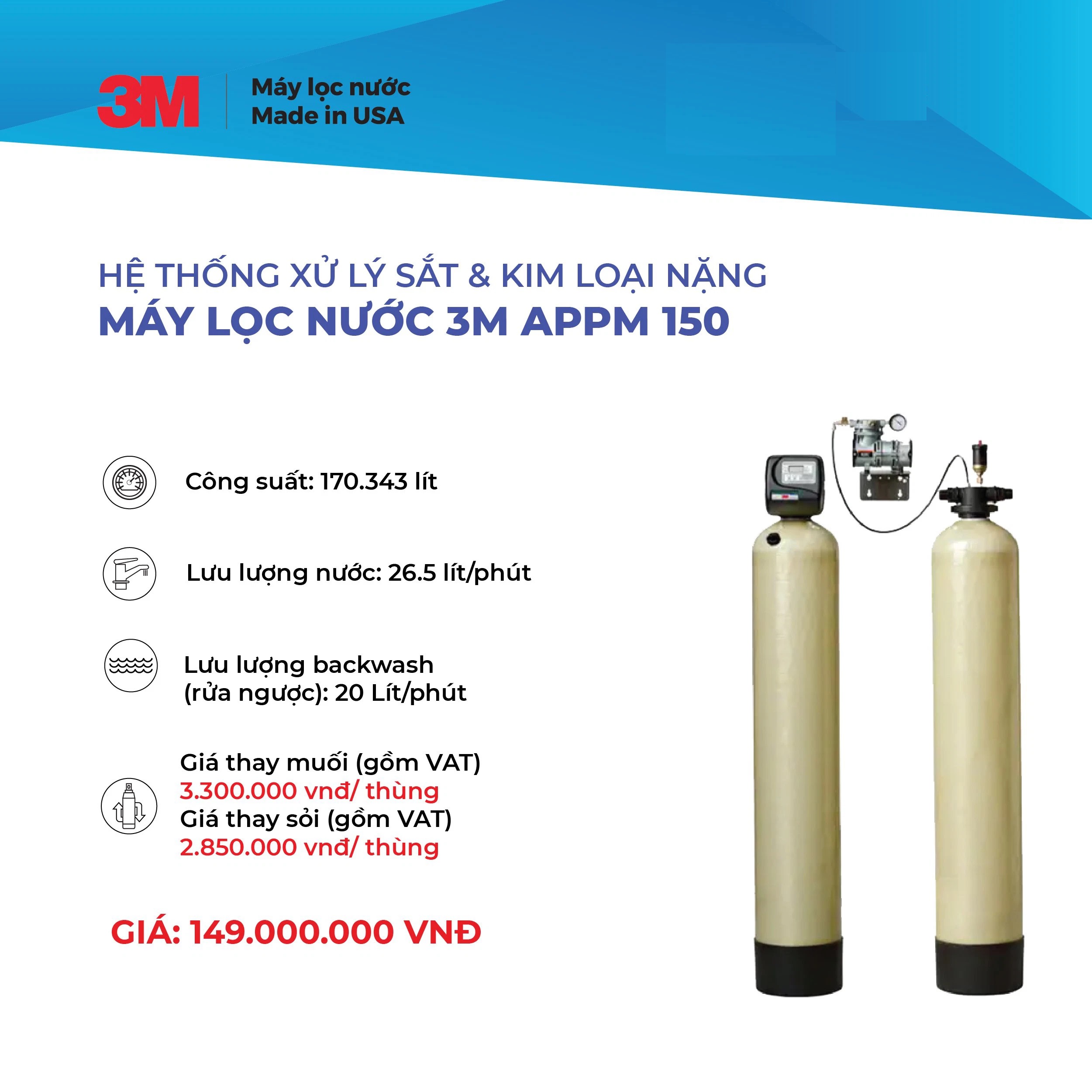HỆ THỐNG XỬ LÝ NƯỚC NHIỄM SẮT KÉP 3M APPM150