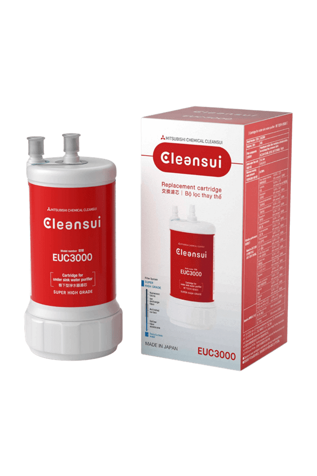 Bộ lọc EUC3000 là thành quả nghiên cứu của Mitsubishi Cleansui trong hơn 40 năm hình thành và phát triển. Bộ lọc tích hợp 4 cấp tiên tiến với trình tự lớp vải lưới không dệt, lớp sợi trao đổi ion, lớp than hoạt tính, lớp màng lọc sợi rỗng.