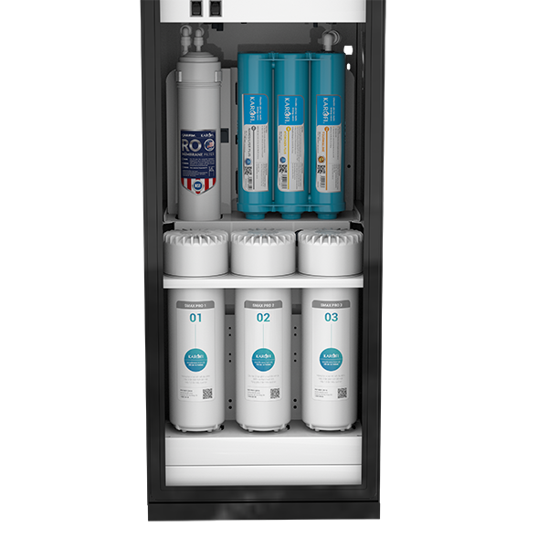 - Cụm Smax Pro V 1, 2, 3: Công nghệ smart connect chống hàng giả hàng nhái, hoạt động ổn đinh X2, bảo vệ hiệu quả hệ thống lọc. Tăng 2 lần hiệu quả lọc, giúp loại bỏ cặn bẩn có kích thước siêu nhỏ từ 1 micromet, chất hữu cơ và mùi khó chịu của nước; tăng gấp đôi tuổi thọ của lõi.