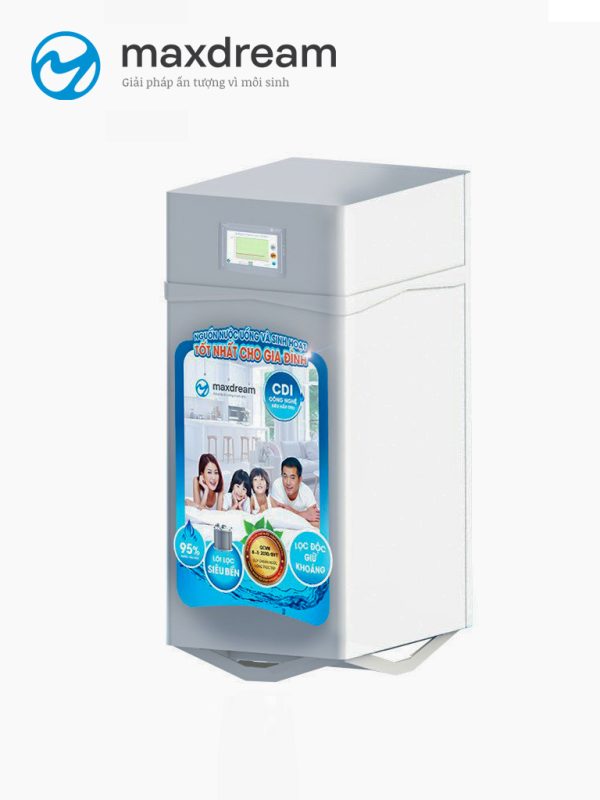 Máy lọc tổng Maxdream ứng dụng công nghệ tiên tiến CDI trên thế giới để cho ra một sản phẩm có chất lượng nước cao nhất hiện nay với cam kết 21 chỉ số ion hòa tan trong nước không nhìn thấy bằng mắt thường. Ngoài ra với máy lọc tổng CDI còn có thể thiết lập các điểm lấy nước uống trực tiếp đạt QCVN06-01:2010/BYT mà không cần đầu tư thêm các máy lọc nước gia đình tốn kém và phức tạp. Lọc nước đầu nguồn cho gia đình không còn xa lạ với người dân thành phố nhất là trong điều kiện nước ngày càng bị ô nhiễm bởi nhiều tác nhân gây bệnh không nhìn thấy bằng mắt thường và nhu cầu bảo vệ sức khỏe của con người tăng cao. Để giải quyết triệt để các tác nhân ấy thì việc lựa chọn công nghệ lọc tổng phù hợp là vô cùng quan trọng. Các công nghệ lọc thô thông thường hay lọc trao đổi ion chỉ xử lý một phần cứng, sắt, phèn trong nước chứ không đảm bảo loại bỏ hoàn toàn mối lo ngại cho cả gia đình. Vì thế công nghệ CDI là lựa chọn tối ưu nhất khi xử lý hiệu quả ion hòa tan trong nước (ion kim loại nặng, ion độc và các chất phóng xạ gây ung thư) nhưng vẫn giữ lại một phần khoáng tự nhiên tốt cho sức khỏe