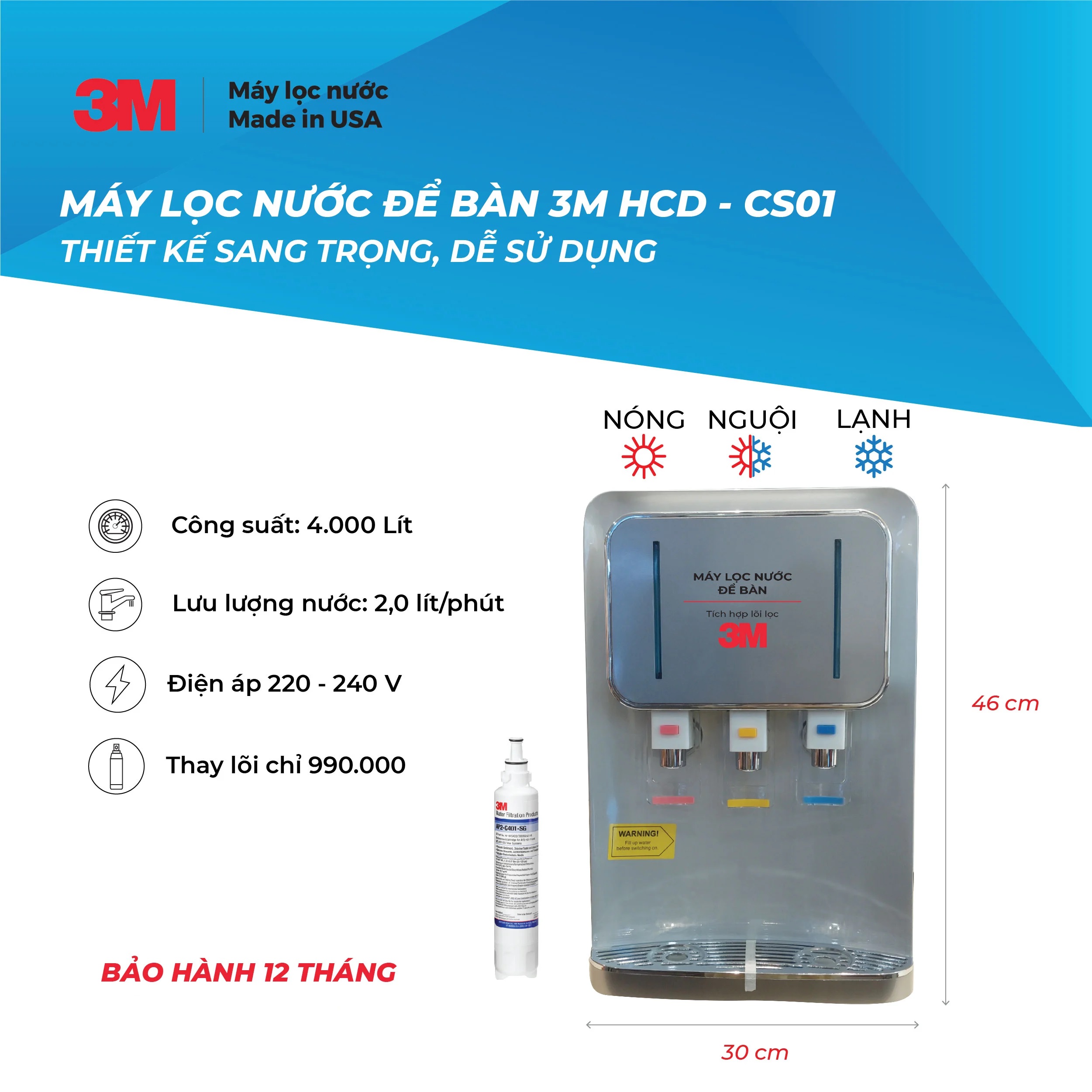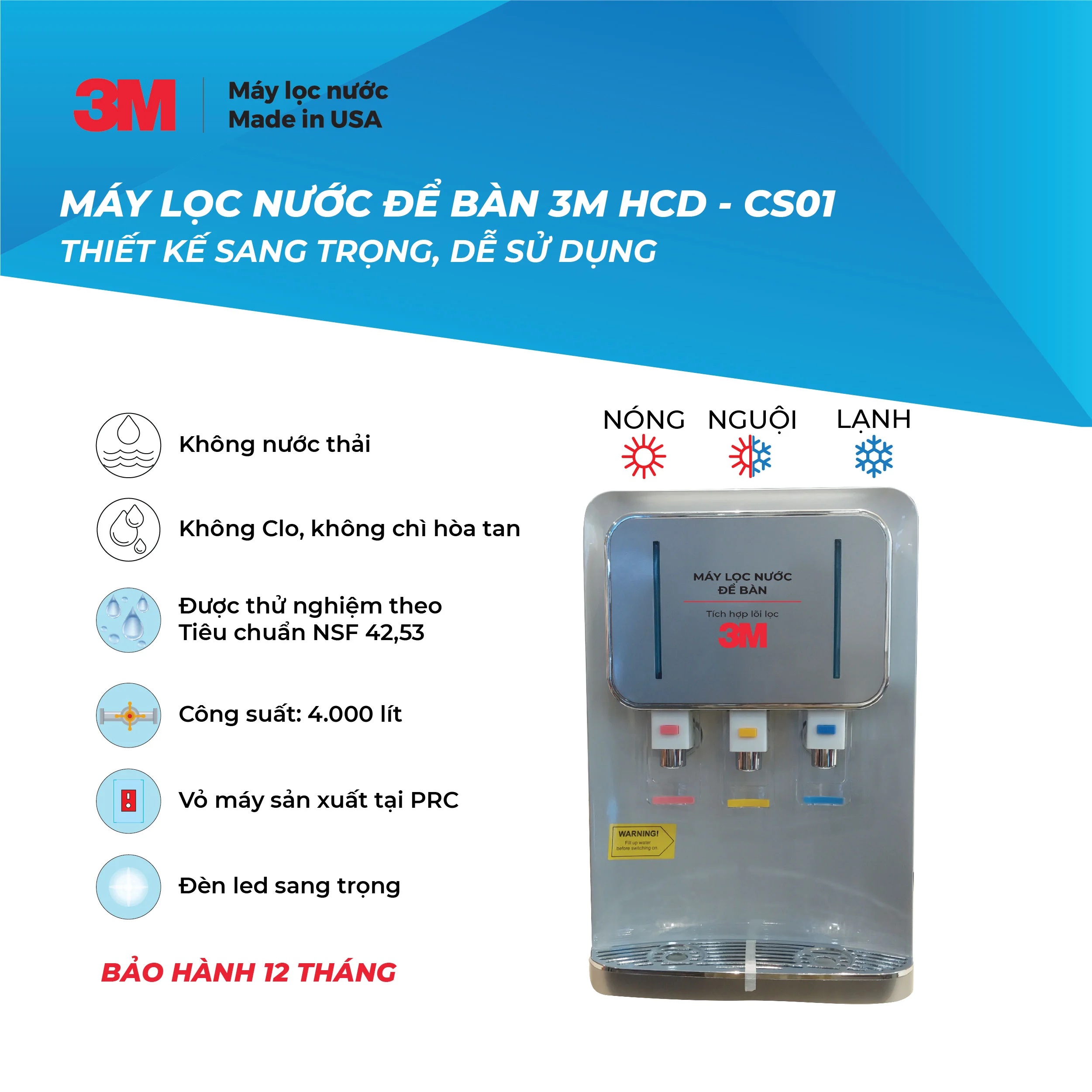 Máy lọc nước nóng lạnh để bàn 3m hcd cs02