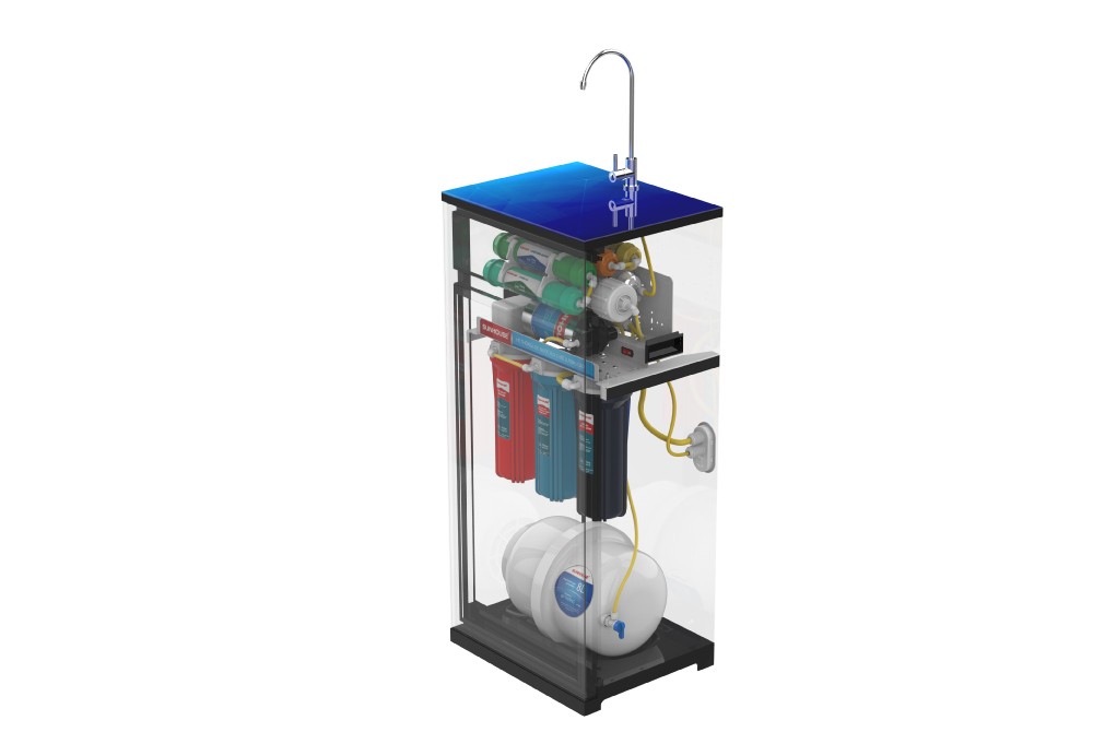 Máy lọc nước R.O 9 lõi SUNHOUSE SHA8859K có vỏ tủ làm bằng kính cường lực với họa tiết đơn giản, hiện đại với màu sắc chủ đạo là sắc xanh dương bắt mắt. Thiết kế kính full viền mặt trên và mặt trước khiến sản phẩm trở nên đẹp mắt hơn. Đặc biệt, cánh tủ được thiết kế độc đáo với các thanh gia cố ở mặt trong, chắc chắn, hạn chế sa cánh tủ và móp méo khi sử dụng.